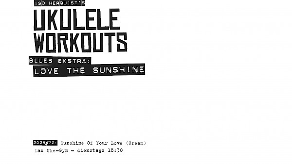 Für leicht fortgeschrittene Ukulelespielende. Vorausgesetzt wird halbwegs flüssiges Akkordspiel, Notenkenntnisse sind hilfreich.