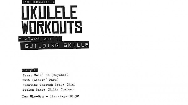 Kaum zu glauben: das ist schon die Fümpfziggste Runde. Alter. Wir lassen es ein wenig krachen: ein bisschen Basics, ein bisschen Strumming, ein bisschen Picking. Ein paar schweißtreibende Übungen für alle Teile der Ukuleles und Ukulalalas. Denn es sind: Iso’s Ukulele Workouts.